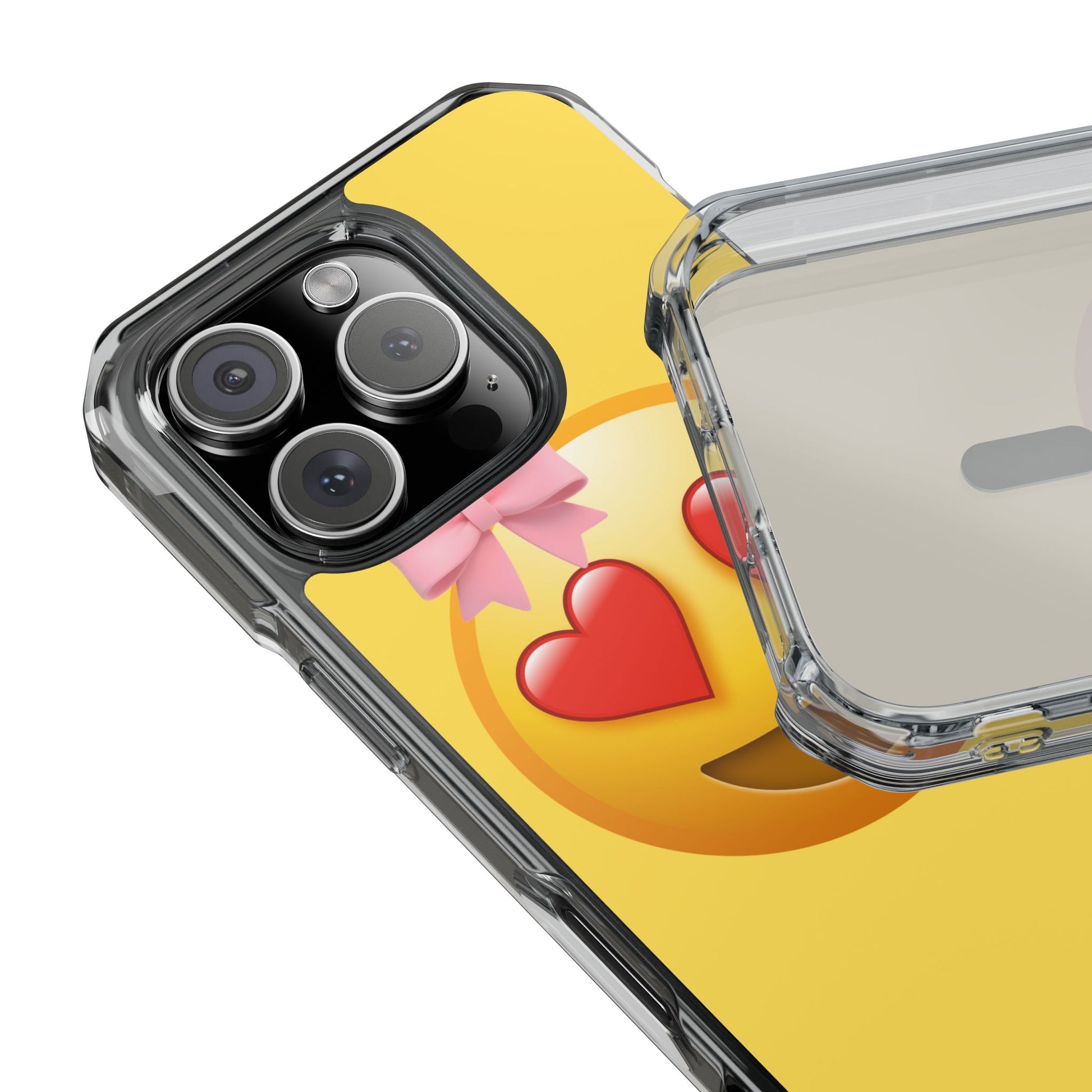 Spread good vibes wherever you go with the Heart Eyes Emoji Case 💛😍. Featuring a glossy yellow background and a cheerful heart-eyes emoji topped with a pink bow, this case instantly adds happiness and style to your phone. Designed for both cuteness and durability, it keeps your phone protected while expressing your fun, confident personality. Made with durable materials and MagSafe® compatibility, this case perfectly blends playful aesthetics with everyday functionality. Whether you’re gifting it to a friend or treating yourself, it’s sure to stand out in any collection — perfect for emoji lovers, trendsetters, and anyone who loves bold accessories.