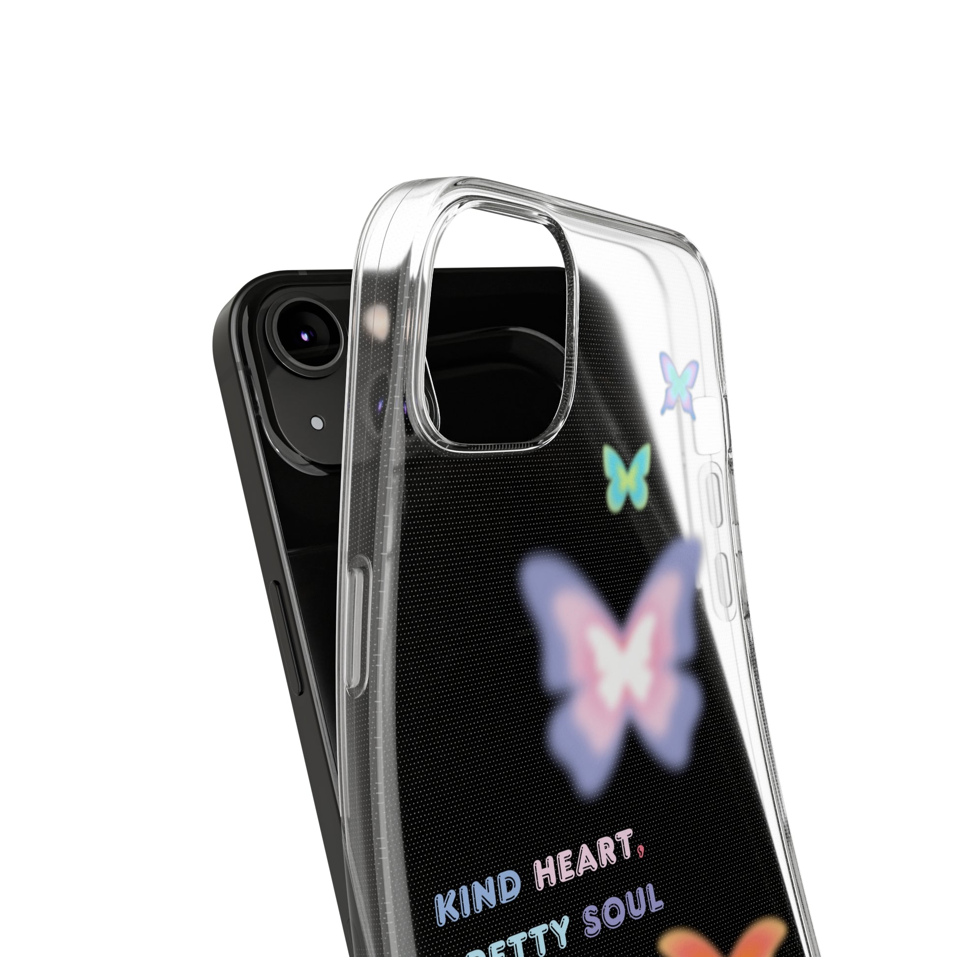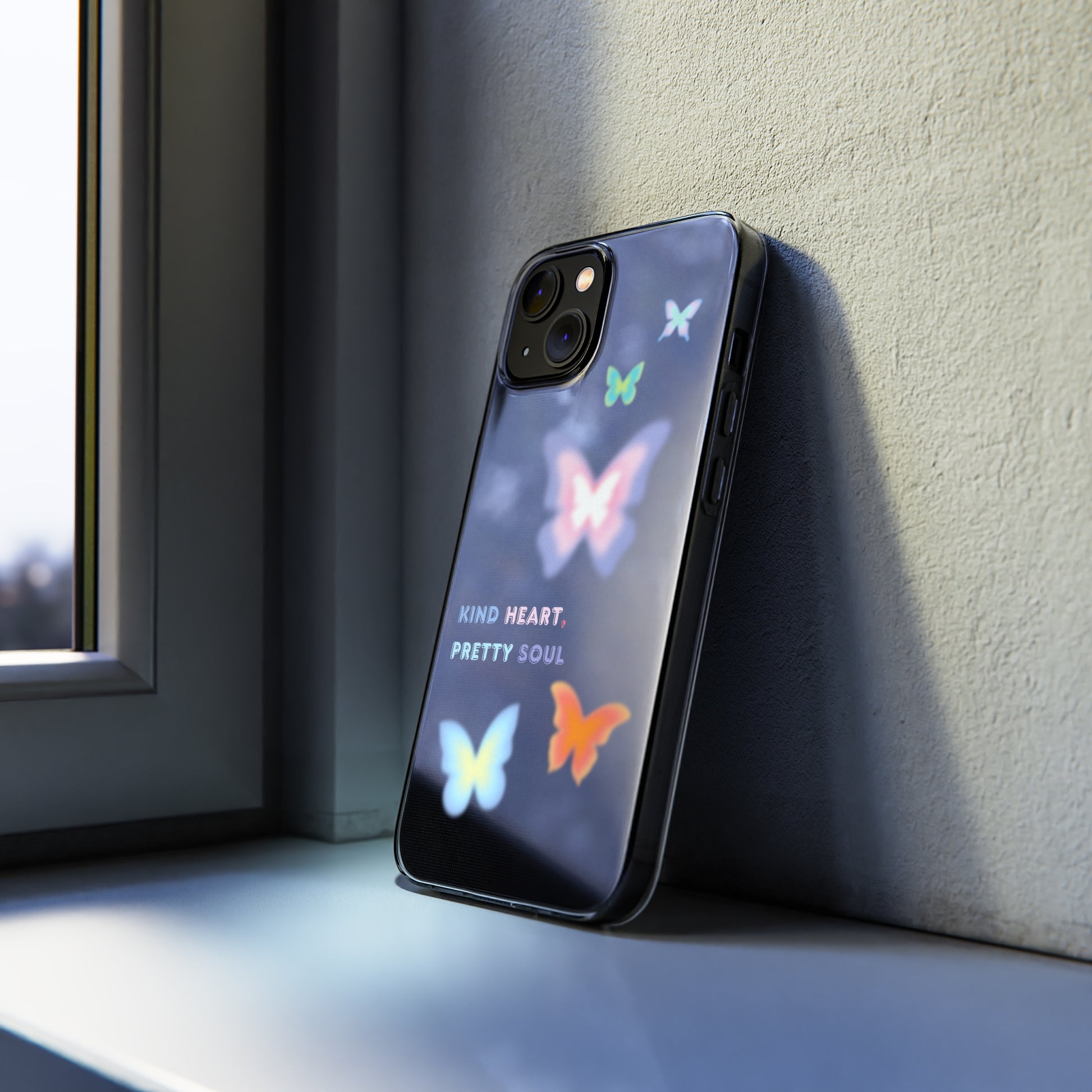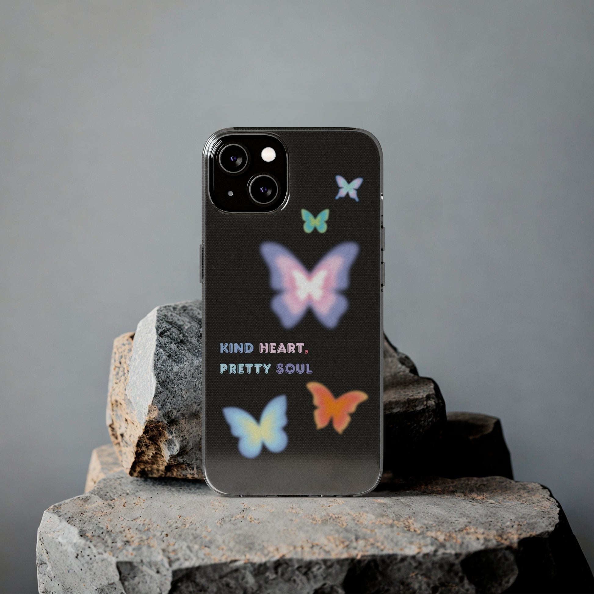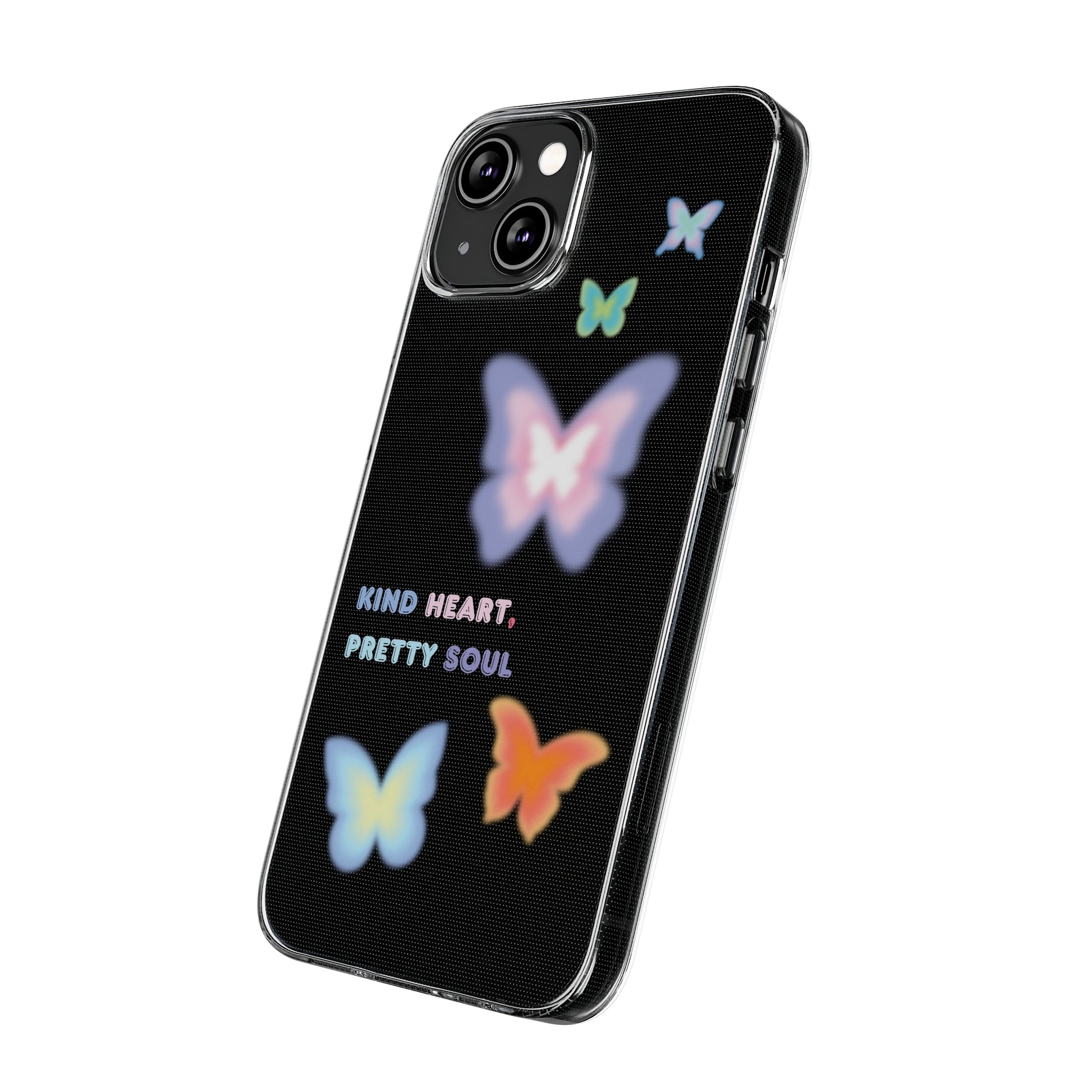 Add a soft, aesthetic vibe to your phone with our Kind Heart, Pretty Soul silicone case. 🖤💜 Featuring a delicate butterfly design, this case balances style with protection. Made from high-quality silicone, it’s flexible, durable, and guards your phone from scratches and light bumps without adding bulk. Open ports keep everything accessible, while the slim fit maintains your phone’s sleek look. Perfect for anyone who believes beauty is in the details. 🌸