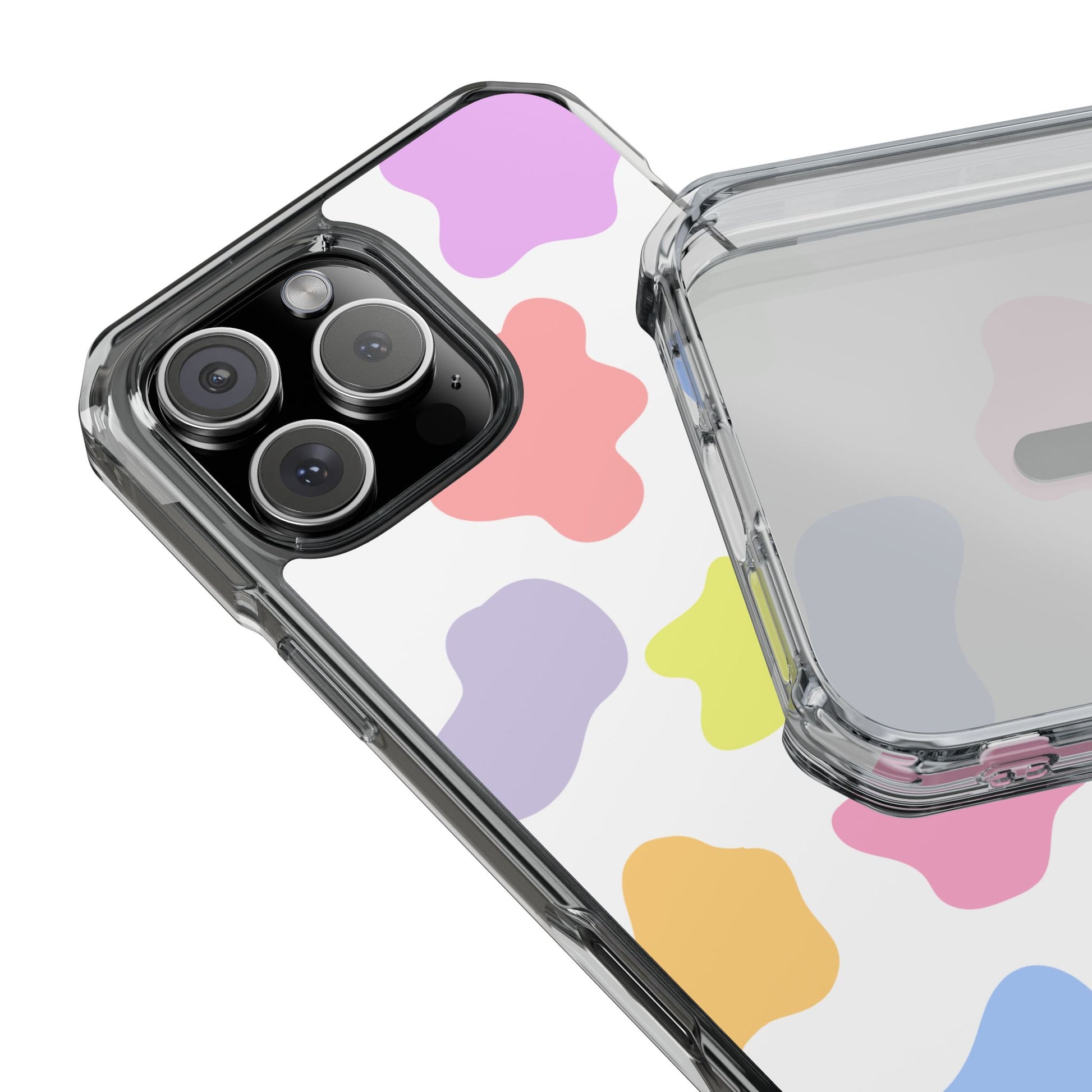 Brighten your day with this Pastel Blob iPhone Case 🌸💛💜. Designed with a playful mix of soft pastel colors in an abstract pattern, this case is perfect for those who love creative, aesthetic accessories that pop. The slim, transparent frame lets your phone’s design shine through while offering strong protection from everyday drops and scratches. Made with durable polycarbonate and flexible TPU sides, it ensures both safety and comfort in your grip. The air-cushioned corners add extra impact resistance, while the MagSafe® compatibility makes it easy to charge without removing the case ⚡. Ideal for students, teens, or anyone obsessed with modern Y2K style, this phone case adds a fun and artsy vibe to your daily essentials.