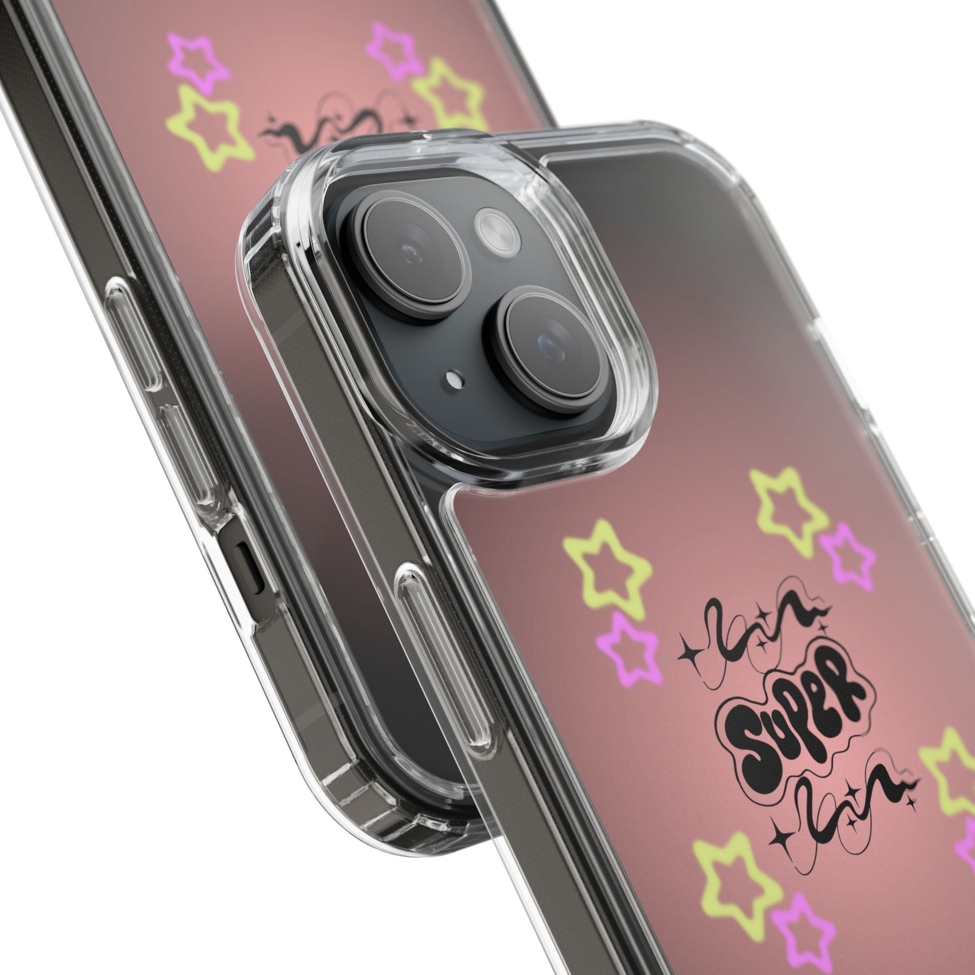 Shine bright with our Super Stars case — a playful design featuring bold “Super” text surrounded by colorful stars. 🌈✨ Made with tough polycarbonate + TPU, it’s shock-absorbing, durable, and built to handle everyday bumps and scratches while keeping your phone slim and stylish. Smooth edges, vibrant colors, and wireless charging compatibility make this the perfect case for anyone who loves to stand out. Great for birthdays, special occasions, or just treating yourself! 💖